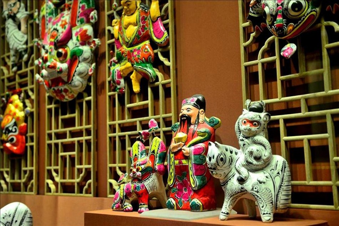 Baoji Folk Museum presents local customs by demonstrating woodblock paintings, paper cutting, embroidery, straw crafts, shadow puppets and other shehuo masks.