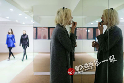 A foreign model does a touch-up.(cqwb.com.cn/Ren Jun)