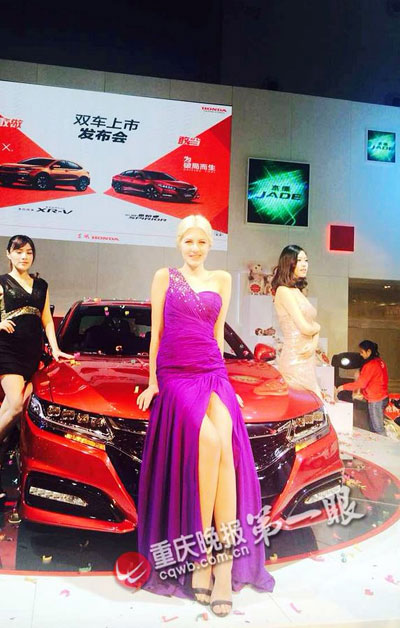 Models at an auto show.(cqwb.com.cn/Ren Jun)