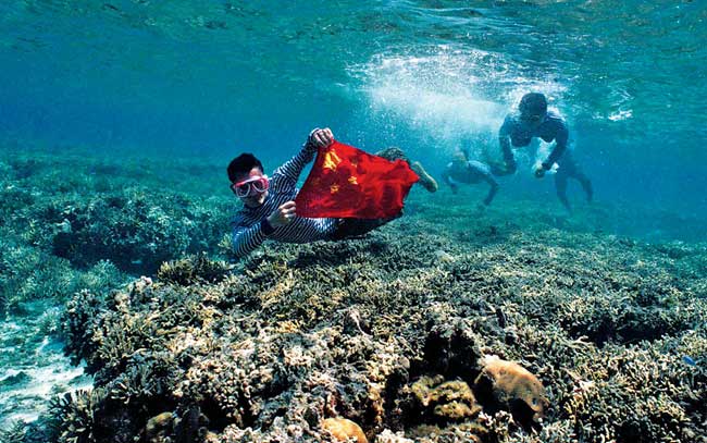 Swim in the adjacent waters of the Nansha Islands.(Chinese Ministry of Defense/Zhou Chaorong)