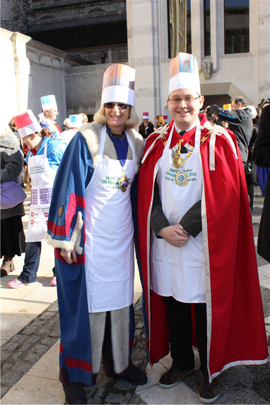 Annually Pancake Day Race held in Guildhall Yard on Tuesday. (People's Daily Online/Bai Tianxing)