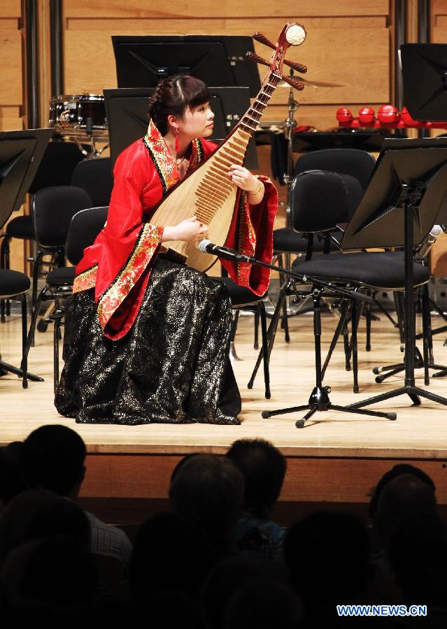 A musician plays Chinese lute during a traditional Chinese music concert to celebrate Chinese New Year in a Chinese cultural center in Sydney, Australia, Feb. 20, 2015. (Xinhua/Jin Linpeng)