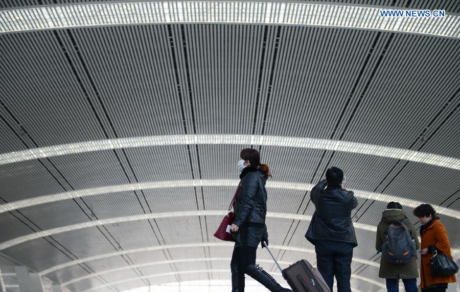Passengers are seen at the Railway Station in Xining City, capital of northwest China's Qinghai Province, Feb. 23, 2015. China saw a passenger flow return peak on Monday as the week-long Lunar New Year holiday drew to an end. (Xinhua/Zhang Hongxiang)