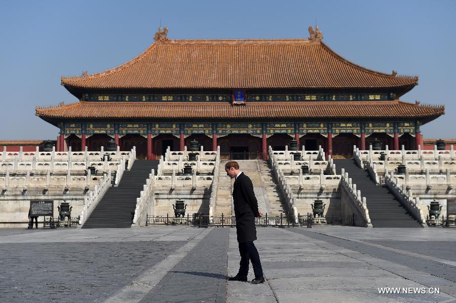 Britain's Prince William visits the Imperial Palace, or the Forbidden City, in Beijing, capital of China, March 2, 2015. (Xinhua/Jin Liangkuai)