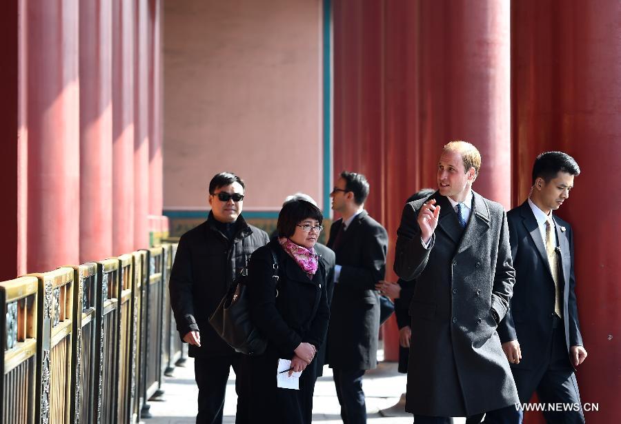 Britain's Prince William (2nd R) visits the Imperial Palace, or the Forbidden City, in Beijing, capital of China, March 2, 2015. (Xinhua/Jin Liangkuai)