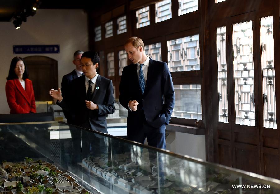 Britain's Prince William (1st R) visits the Shijia Hutong Museum in Beijing, capital of China, March 2, 2015. (Xinhua/Jin Liangkuai)