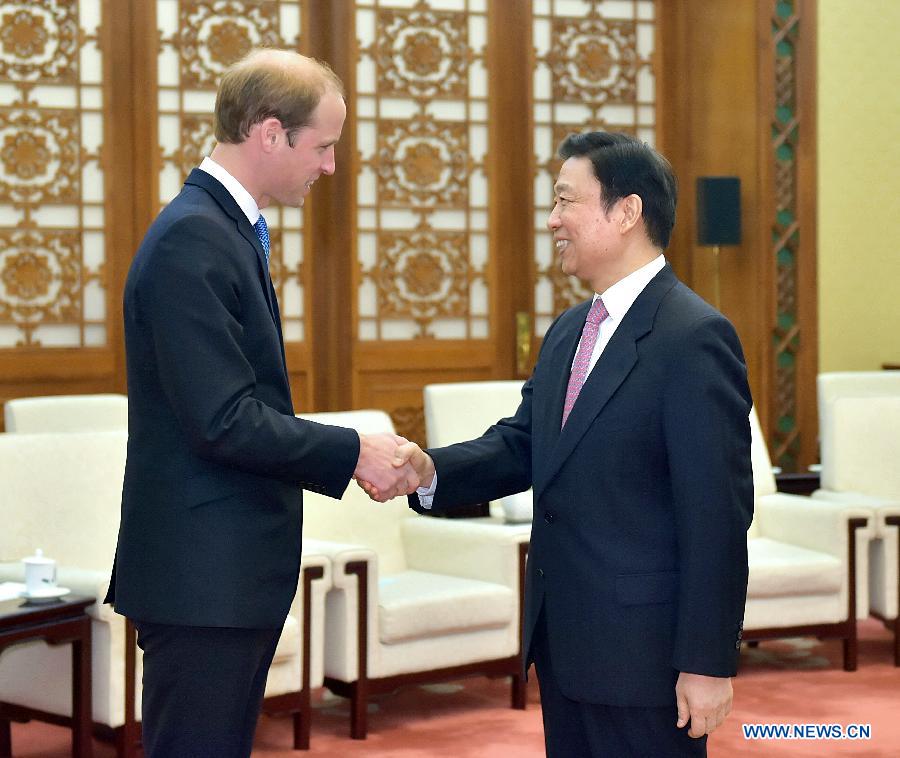 Chinese Vice President Li Yuanchao (R) meets with Britain's Prince William at the Great Hall of the People in Beijing, capital of China, March 2, 2015. (Xinhua/Li Tao)