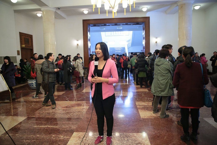 Chinese mainland journalists and reporters line up to pick up press cards for the third session of the 12th National People's Congress (NPC) and the third session of the 12th Chinese People's Political Consultative Conference (CPPCC) on March 1, 2015. More than 3,100 journalists will participate in reporting the two sessions. (Photo/ gmw.cn)