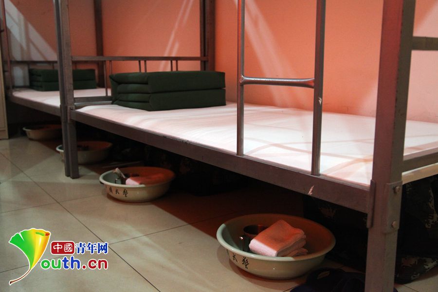 Soldiers with Beijing armed police corps prepare for the upcoming Two Sessions at the Media Center Hotel in Beijing on Feb. 27, 2015. Parts of the hotel's standard rooms have been converted to accommodate the soldiers. (Youth.cn/Kui Gongchen)