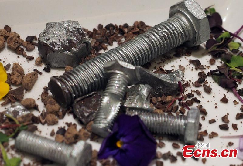 Screws made of chocolate by Chinese cooking master Yang Yong are on display during an activity to mark the second anniversary of the founding of Sichuan Province Chamber of Commerce in the United States in Los Angeles, Mar. 2, 2015. (Photo: China News Service/Mao Jianjun)