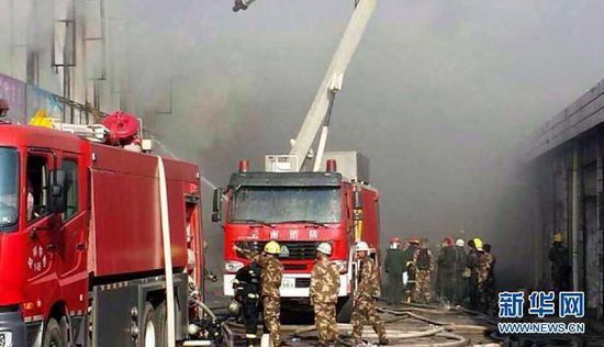 The fire broke out in three two-story buildings at the trade center located in Guandu District in the provincial capital of Kunming City, said a spokesman with the provincial public security fire control contingent.