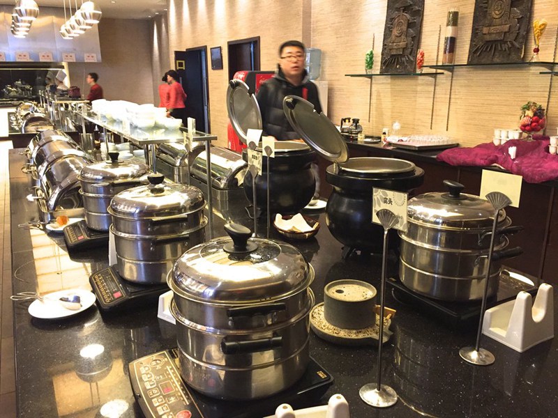 Ten warm dishes and five kinds of staple food are served at the restaurant for NPC deputies and CPPCC members. (Photo/Jiang Xin)