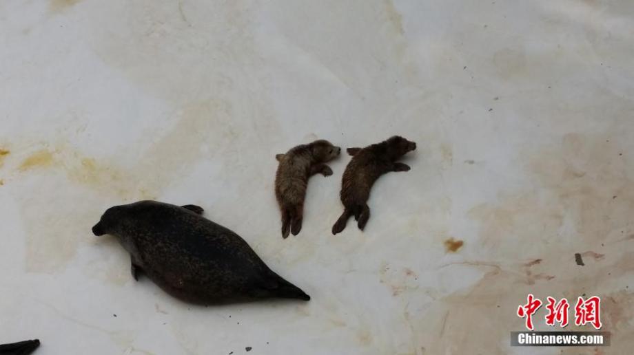 A female harbor seal gave birth to twins in an aquarium in Dalian on March 4, 2014. According to documents, this is the world's first case of harbor seal twins born in an artificial breeding environment. (CNS/Yang Yi)