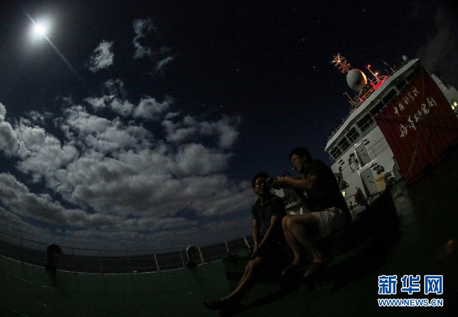 Photo taken on March 5, 2015 shows that a moon is seen in the sky at Lantern Festival's night in Beijing, capital of China. (Photo source:Xinhua)