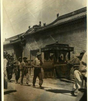 The groom’s family would welcome the bride to the wedding in a sedan chair. As soon as the bride arrived at the groom's home, the new couple would perform the three formal bows and serve their parents tea. There would be wedding banquets after the performance. The banquets were sometimes far more important than the actual wedding itself.