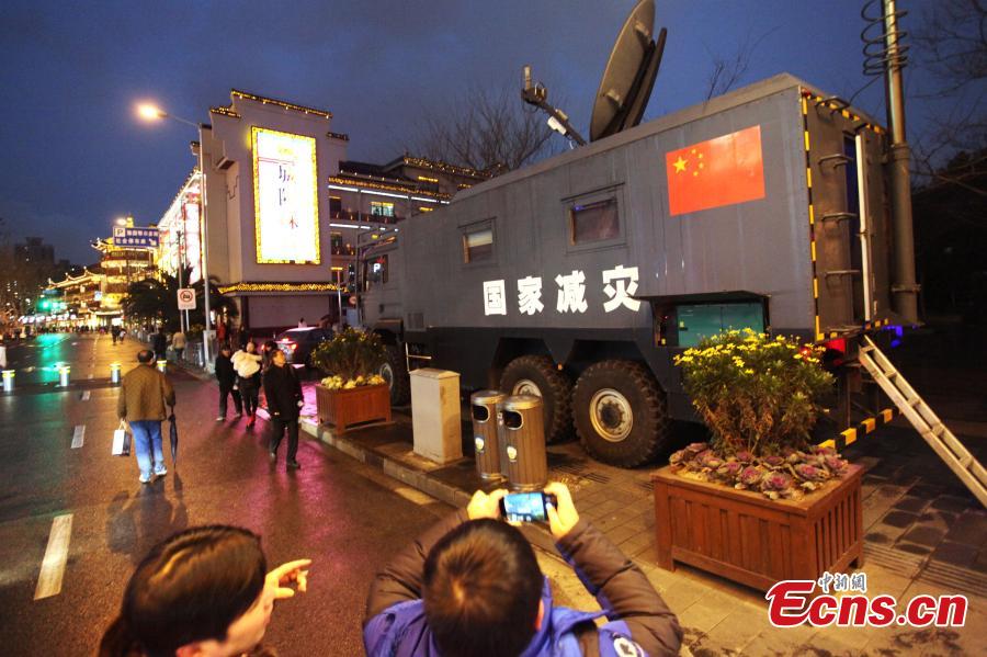 A high-tech vehicle is deployed to supervise visitors' flows near the Yuyuan Garden in Shanghai, March 5, 2015. To ensure the safety of visitors on the Lantern Festival, authorities in Shanghai have strengthened supervision of gatherings near local scenic spots. (Photo/Zhang Hengwei)