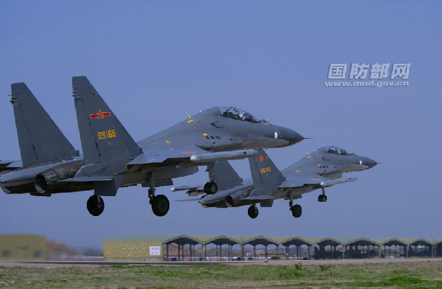 Photo shows warplanes of a brigade under the Nanjing Military Region and a pilot regiment under the North Sea Fleet of the Chinese People's Liberation Army conducting military drill in early March. (Mod.gov.cn/Photo)