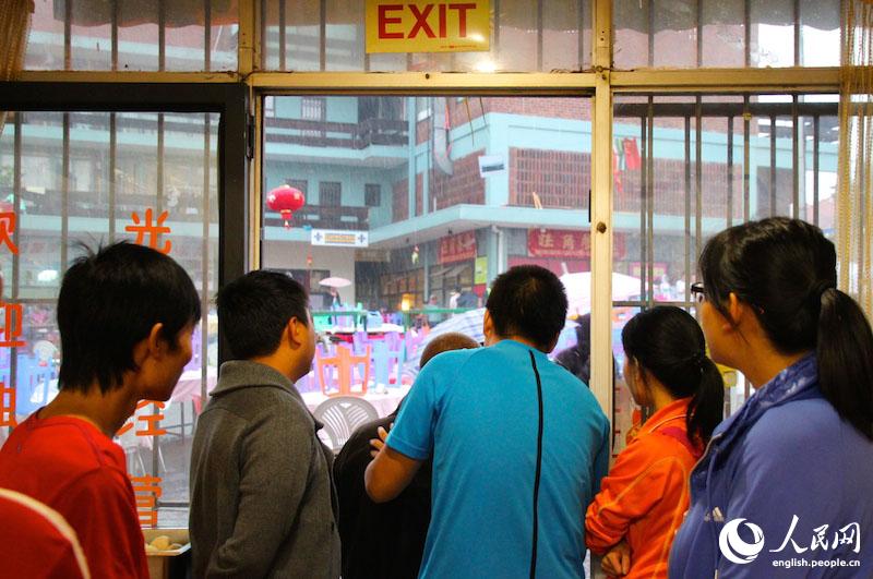Chinese restaurants are fully booked on the day. With the event delayed by a light shower, owners of the restaurants were waiting for the rain to leave off. (People's Daily Online/ Zhang Jiexian)