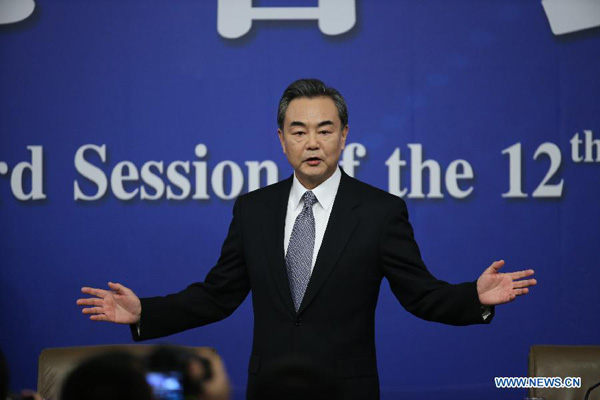 Chinese Foreign Minister Wang Yi gives a press conference for the third session of China's 12th National People's Congress (NPC) in Beijing, capital of China, March 8, 2015. (Xinhua/Xing Guangli) |