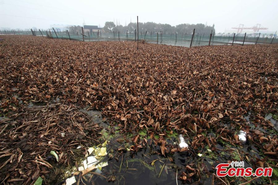 Water hyacinth is seen covering the Hangyong Canal in Shaoxing, East China’s Zhejiang province on March 8, 2015. The water plant clogs waterways in many places of China in recent years, choking fish and causing hardship for local fish farmers. (Photo: China News Service/ Li Ruichang) |