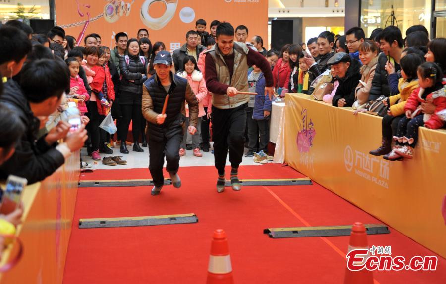 Men wearing pairs of women's high heels compete in an obstacle race at a shopping mall in Fuzhou, East China’s Fujian province, March 8, 2015. International Women's Day on March 8 dates back to the beginning of the 20th Century and has been observed by the United Nations since 1975. The UN writes that it is an occasion to commemorate achievements in women's rights and to call for further change. (Photo: China News Service/Lv Ming)