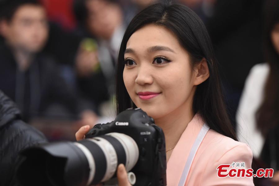 A reporter attends a press conference of China's Foreign Minister Wang Yi during the Third Session of the 12th National People's Congress in Beijing, March 8, 2015. International Women’s Day is annually held on March 8 to celebrate women’s achievements throughout history and across nations. (Photo: China News Service/ Liao Pan) |
