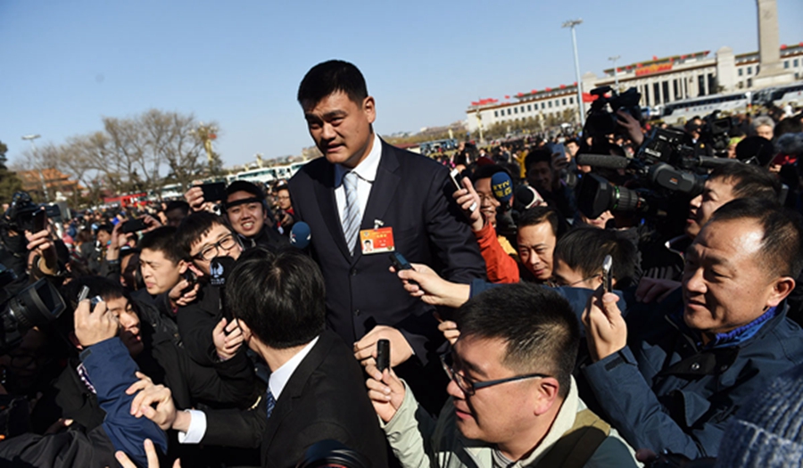 Yao Ming, CPPCC member and former NBA player, attends the opening ceremony of the third session of the 12th National Committee of the Chinese People's Political Consultative Conference (CPPCC). (AFP/GREG BAKER)