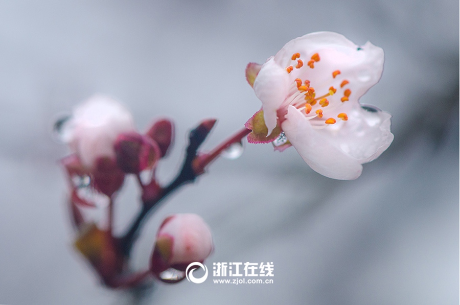 Oriental cherry blossoms after the rain. (Zhejiang Oline/Ni Yanxiang)