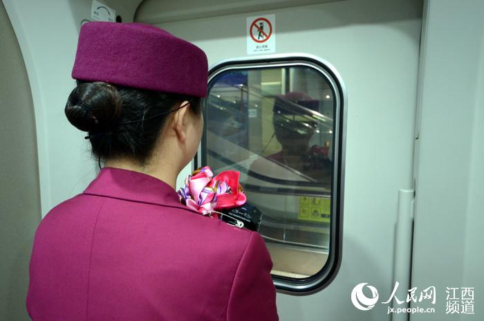 At 12:28 a.m., the door closes. The high-speed train from West Nanchang to Shanghai starts its journey. (Photo/People's Daily Online)