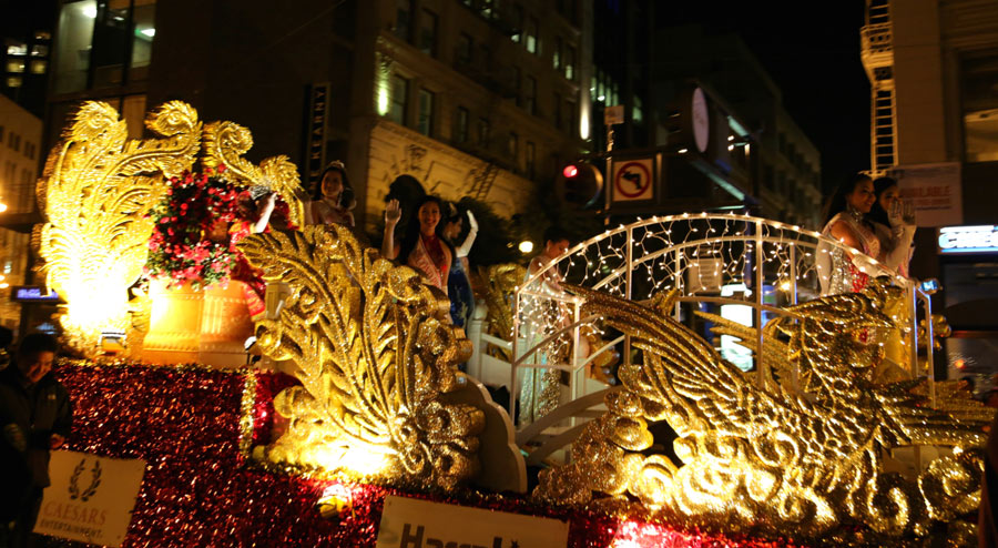 The annual Chinese New Year Parade in San Francisco Chinatown is one of the largest across the country. Decorated floats, stilt walkers, dancing lions and dragons, Chinese acrobats as well as firecrackers all feed the 1.2 million audience with an authentic flavor of lunar new year celebration experience on March 7, 2015. (People’s Daily Online/Han Shasha) |