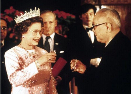 Former President of China Li Xiannian hosts a welcoming dinner for Queen Elizabeth II in 1986. (file photo)