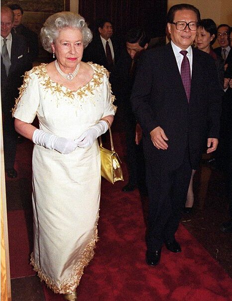 Queen Elizabeth II welcomes then Chinese President Jiang Zemin in 1999.(file photo)