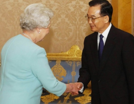 Queen Elizabeth II meets with then Chinese Premier Wen Jiabao at Buckingham Palace in 2004. (file photo)
