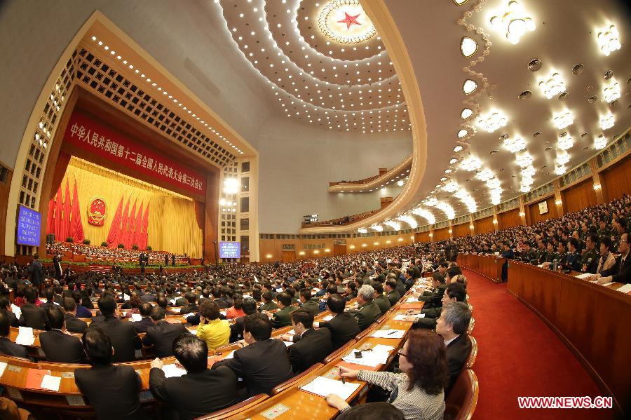 The closing meeting of the third annual session of China's 12th National People's Congress (NPC) is held at the Great Hall of the People in Beijing, capital of China, March 15, 2015. (Xinhua/Li Gang)