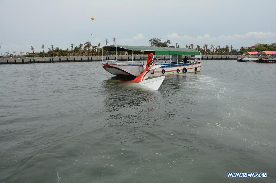 Photo taken on March 16, 2015 shows the site of plane crash in Pingtung County, southeast China's Taiwan. A plane crashed into waters off Taiwan's Pingtung County at about 10 a.m. on Monday, according to local reports. Two people have reportedly been pulled from the water showing no sign of life. (Xinhua) |