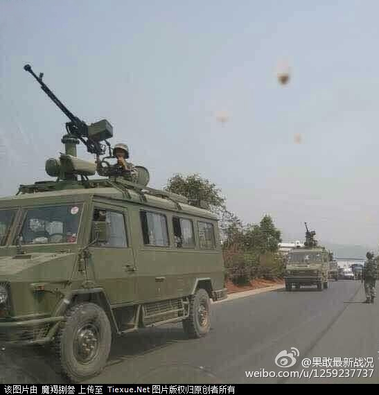 Long queues of military trucks and missile carriers are said to have stationed on the China-Myanmar border on March 15, 2015. [Photo: weibo account of "guo gan zui xin zhan kuang"]