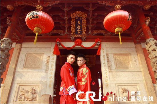 Wedding photo of a gay couple in southeast China's Fujian province. (Photo source:CRI online)