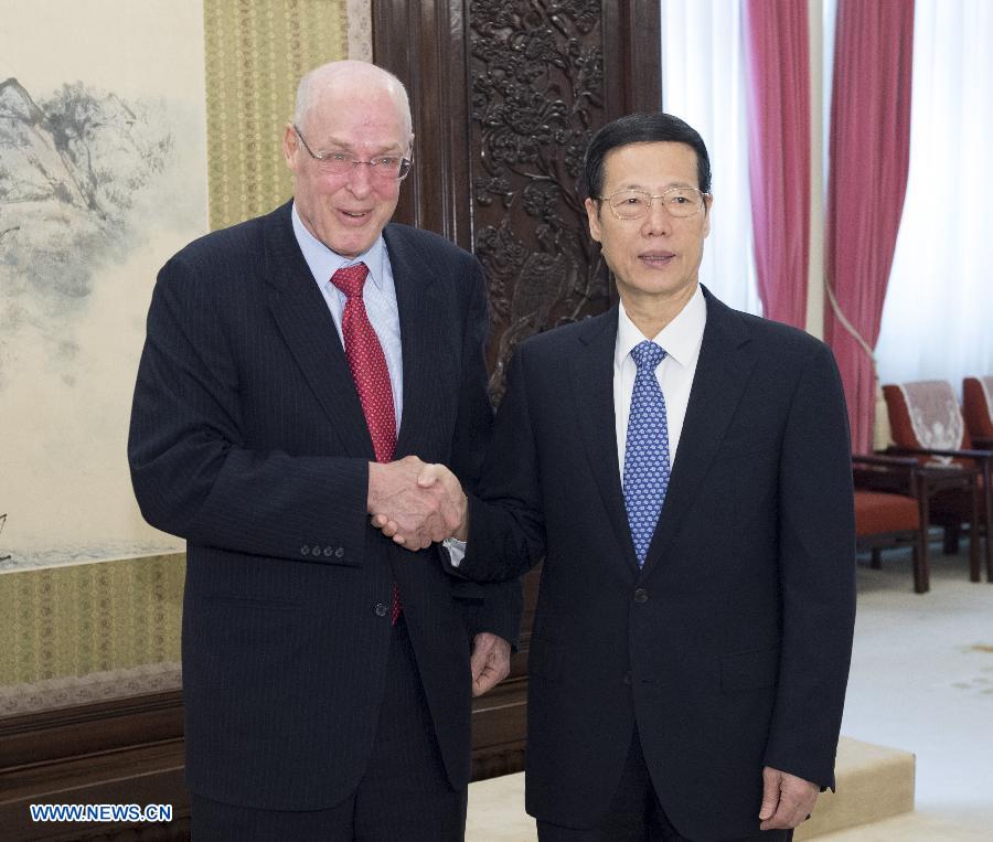 BEIJING, March 17 -- Chinese Vice Premier Zhang Gaoli met with former U.S. Secretary of the Treasury Henry Paulson in Beijing on Tuesday.