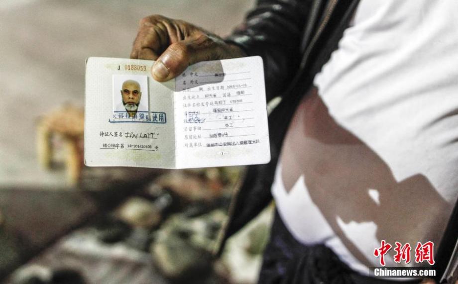 Myanmar jade trader shows his temporary residence permit. (CNS/Zhang Hao)