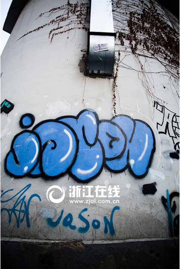 New graffiti on the walls of Youyong Alley in Hangzhou attract pedestrians’ attention and slow their steps down. The color splash on the walls gives people a reason to slow down and enjoy the beauty of life. (Zhejiang Online/Tong Xiaolei)