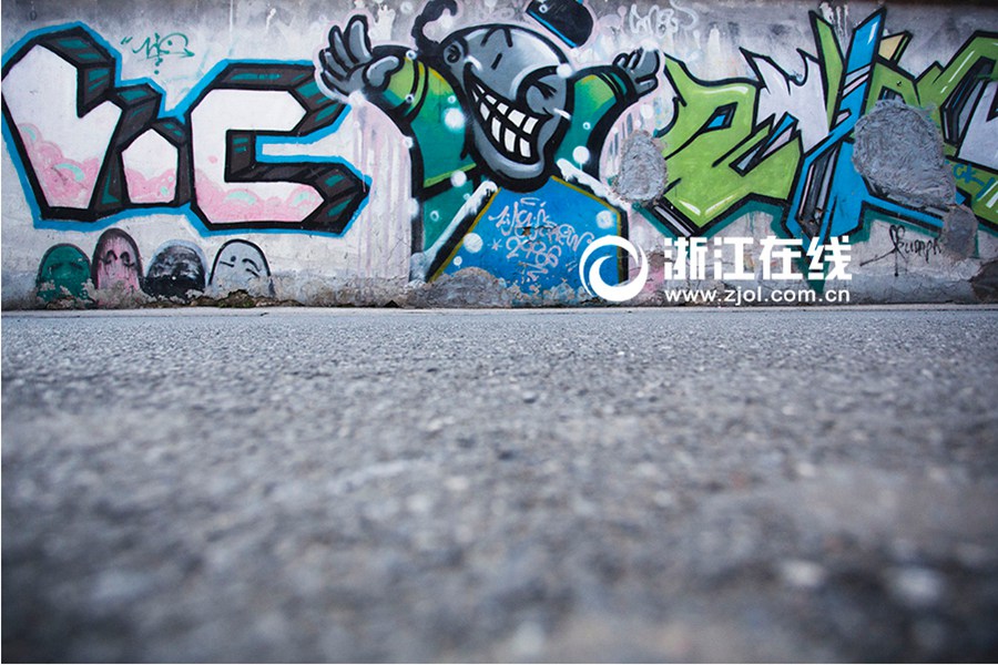 New graffiti on the walls of Youyong Alley in Hangzhou attract pedestrians’ attention and slow their steps down. The color splash on the walls gives people a reason to slow down and enjoy the beauty of life. (Zhejiang Online/Tong Xiaolei)