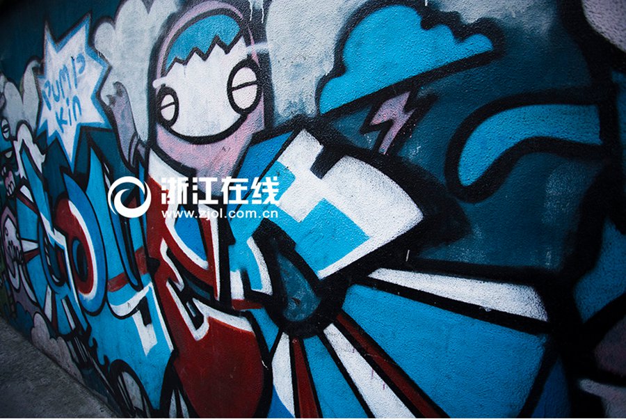New graffiti on the walls of Youyong Alley in Hangzhou attract pedestrians’ attention and slow their steps down. The color splash on the walls gives people a reason to slow down and enjoy the beauty of life. (Zhejiang Online/Tong Xiaolei)