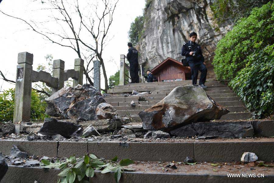 NANNING, March 19 -- Falling rocks and earth, including a huge boulder, have killed seven people on Thursday morning at a scenic spot in south China's Guangxi Zhuang Autonomous Region.