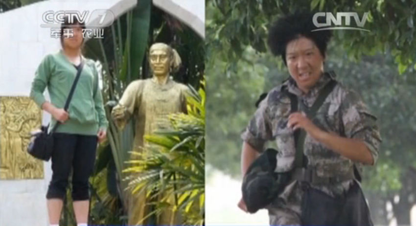 In order to be able to carry the missiles, some female soldiers in Guangzhou Military Region gained more than 10 kilograms. The screen shot shows the soldiers before and after weight gain. (Photo/CNTV)