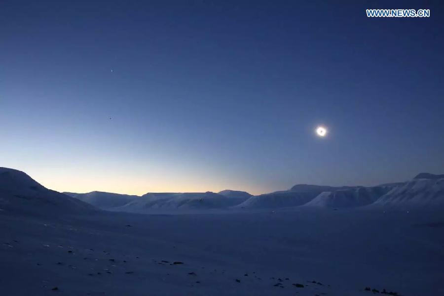 hoto taken on March 20, 2015 shows the view during full solar eclipse in Longyearbyen, Norway. (Photo: Xinhua/Chen Haiying)