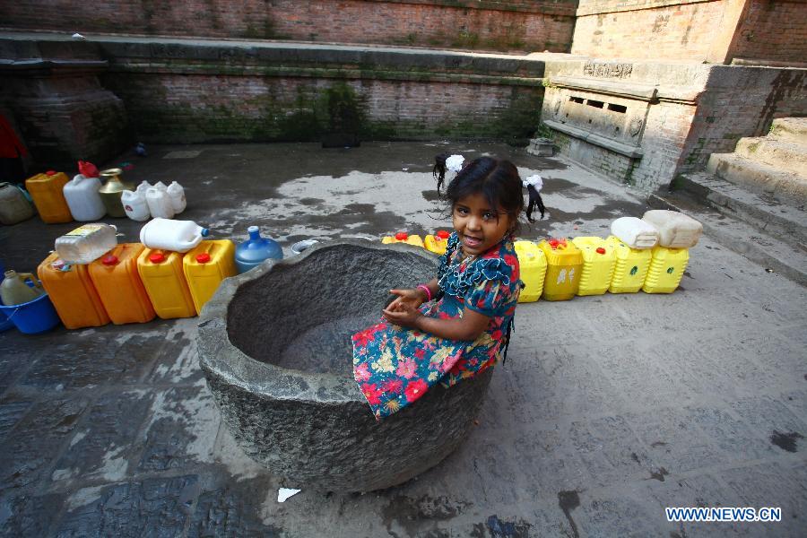 A Nepalese girl waits for her turn to fill the water tank from the traditional stone tap on the World Water Day in Lalitpur, Nepal, March 22, 2015. World Water Day is observed annually to bring the awareness globally to save, conserve and manage water resources for future generations. (Xinhua/Pratap Thapa) |