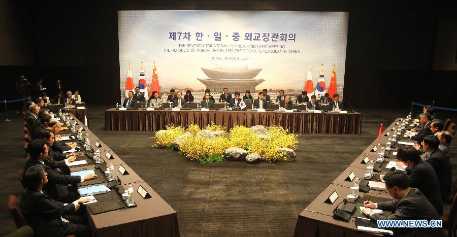 Participants take part in the 7th Trilateral Foreign Ministers' Meeting of China, South Korea and Japan in Seoul, South Korea, on March 21, 2015. (Xinhua/Yao Qilin)