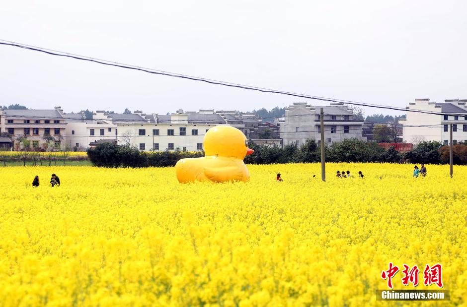 Yellow rubber duck stands in field in E China's Jiangxi Province, March 21, 2015. (Photo: chinanews.com)