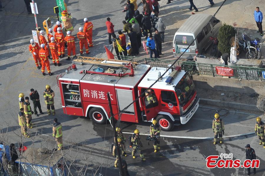 Firefighters move to extinguish a fire on Dahei Mountain in Dalian city, Northeast China's Liaoning province, March 22, 2015. The mountain caught fire at 2 p.m. on Sunday. (Photo: China News Service/Liu Degang)