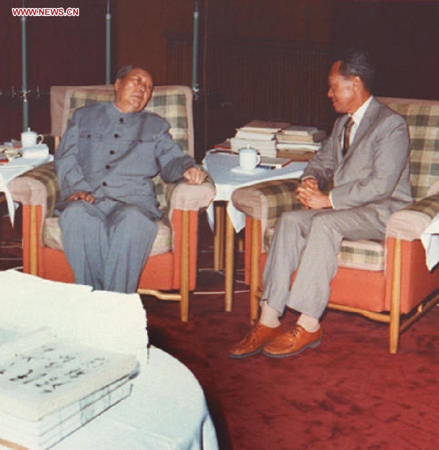 File photo taken on May 12, 1976 shows China's Chairman Mao Zedong meeting with Lee Kuan Yew (R), in Beijing, capital of China. Lee Kuan Yew, former prime minister of Singapore, died at 3:18 am on March 23, 2015 at the age of 91, according to a statement released by the Prime Minister's Office (PMO). (Xinhua/Du Xiuxian) |